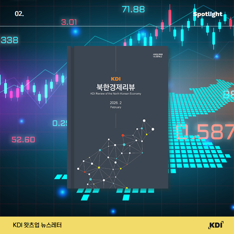 경제동향 3월호 생산 증가세가 완만한 모습 우리 경제는 수출금액이 ICT 품목을 중심으로 양호한 흐름을 지속하고 있으나, 생산 물량 확대로 이어지지는 못하고 있습니다. 서비스업 생산은 소비 개선세로 양호한 흐름을 보인 반면, 건설투자 부진은 장기화되는 모습입니다. 한편, 중동 전쟁 발발로 국제유가가 급등하는 등 대외 불확실성이 확대되고 있습니다. 자세한 내용 지금 바로 만나보세요. 북한경제리뷰 2월호 북중관계의 현황과 전망 제9차 당대회를 앞둔 북한의 정치·대외·경제·군사·사회 전반의 전략 기조를 분석하고, 미중 전략경쟁 속 북중관계의 구조 변화를 조망합니다. 정치 부문에서는 김정은 중심의 당·국가 권력구조 재정비와 '새로운 시대 5대 당건설노선'을 통한 유일영도체계 공고화 가능성을 검토했습니다. 지금 2월호 <북한경제리뷰>에서 자세한 내용을 확인하세요.